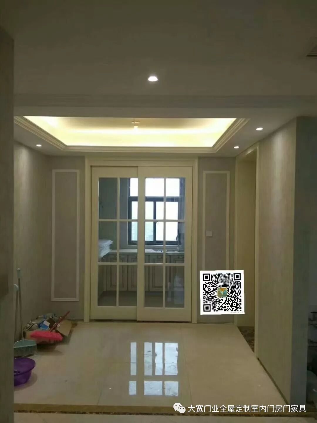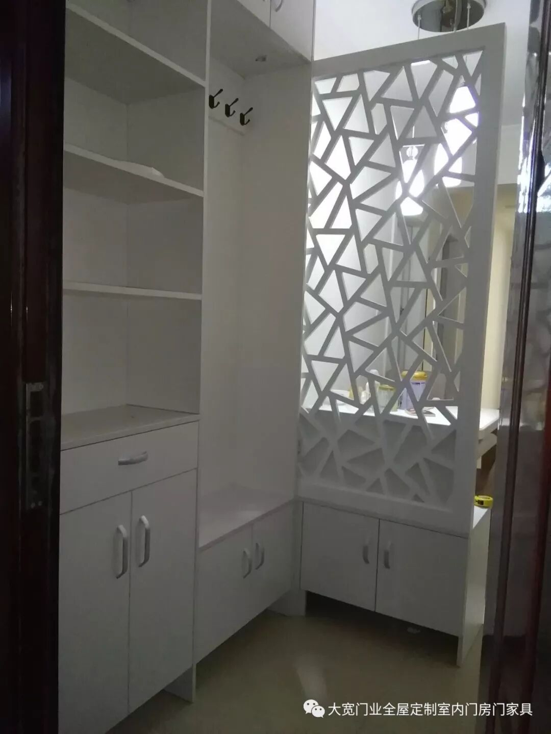 1.入户门厅白色鞋柜+入户门套